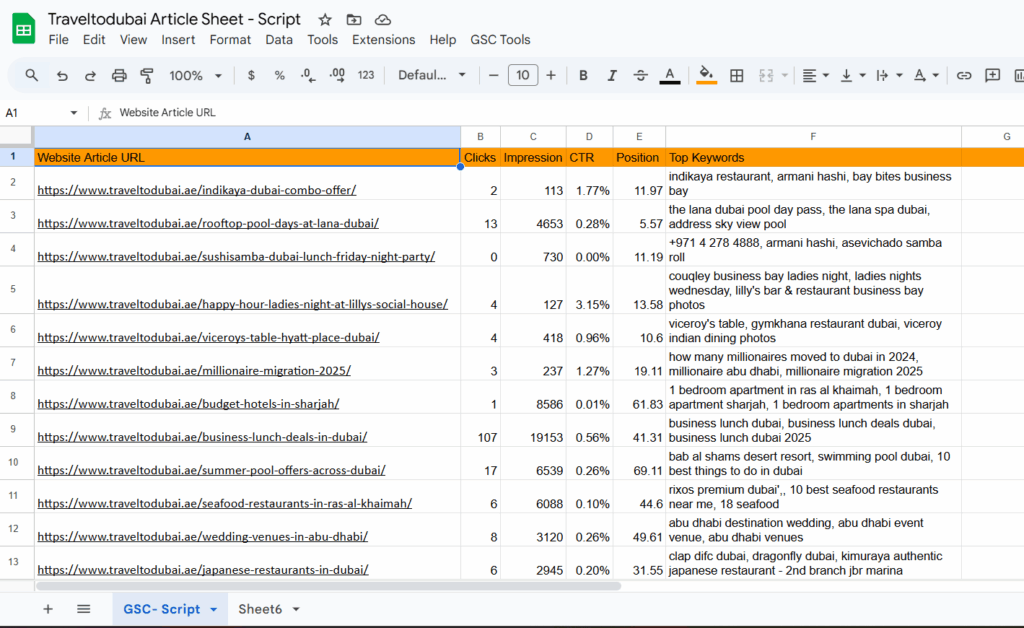 👉 So instead of just pulling data, you can turn the sheet into a content decision dashboard: